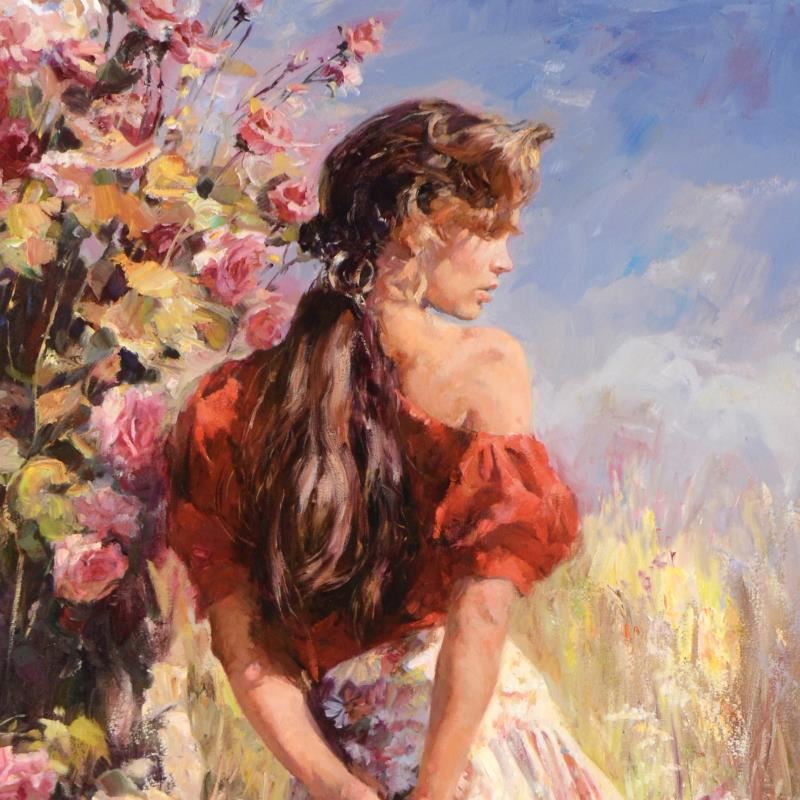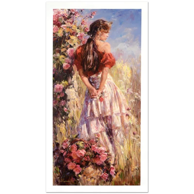 "Cherished Roses" is a limited edition hand embellished giclee on canvas by the husband and wife team, Mikhail and Inessa Garmash! This piece is numbered and hand signed by the artists! Includes Certificate of Authenticity! Measures approx. 24" x 48" (image).