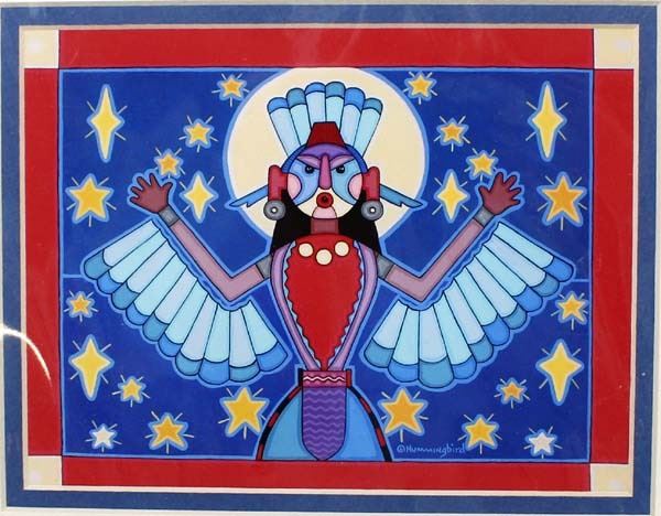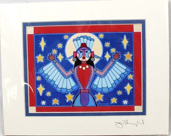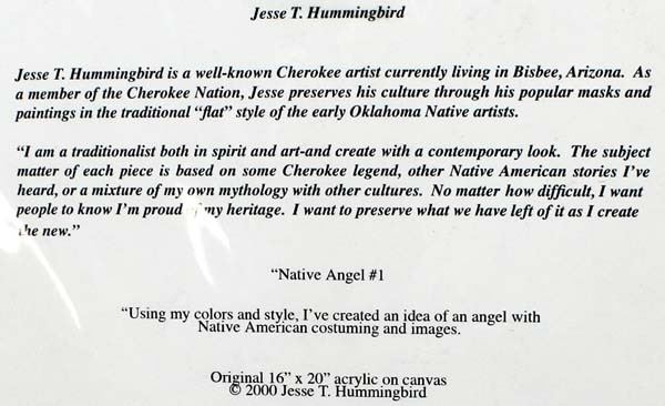 Native American Cherokee ''Native Angel #1'' Print by Jesse T. Hummingbird, hand signed and double matted, c. 2000, visual measures 5.5'' x 7'', overall measurement of 8'' x 10''
