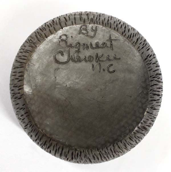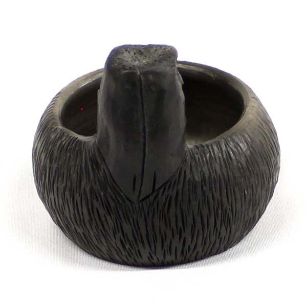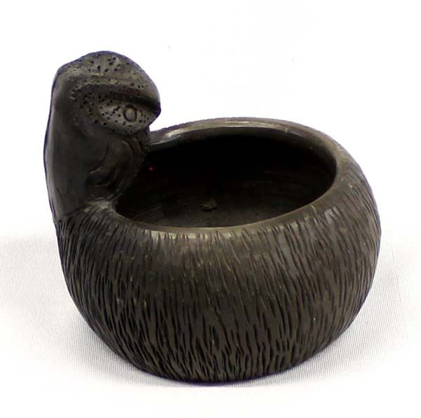 Native American Cherokee Owl Pottery Bowl by Louise Bigmeat Maney of North Carolina (1932-2001), measures 4''D x 4''H and is signed on the bottom, FYI: ''Louise Maney is known for pieces created with her husband John Henry Maney. John Henry threw the pots. Louise did the final shaping and decorating using traditional tools.''