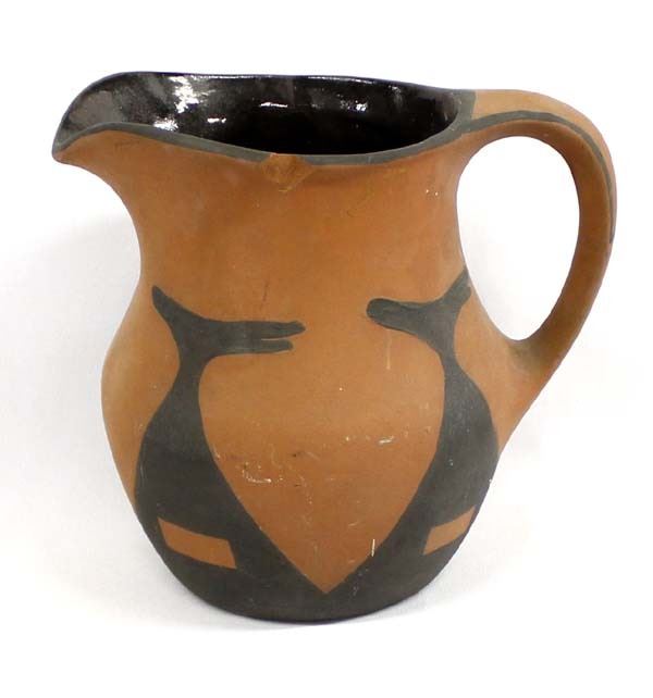 Cherokee Pottery Pitcher, has a chip in rim, measures 6'' X 7'' X 8''