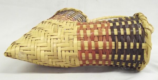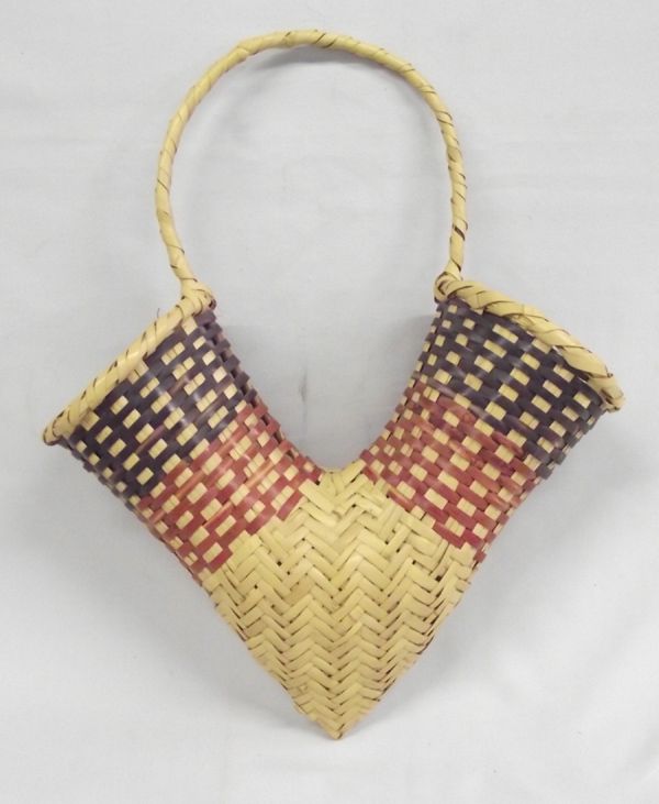 Native American Cherokee Split Cane Basket, this is an exquisite three toned basket, handled, with open double ends, unique shape, measures approx. 16.25''L x 13.5''W