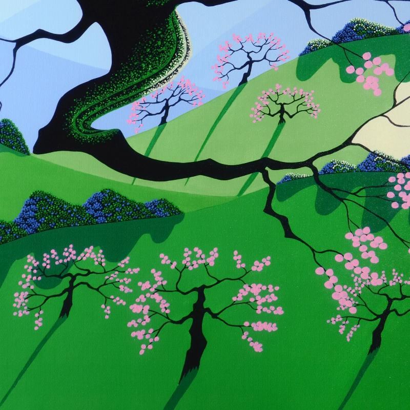 Larissa Holt, a student of distinguished artist Eyvind Earle(1916-2000), uses bold colors and breathtaking scenery to create images of Nature in her own unique style. "Cherries Jubilee" is a limited edition giclee on stretched canvas by Holt, numbered and bearing Holt's authorized signature. This piece comes gallery wrapped. Includes Certificate of Authenticity! Measures approx. 27" x 22" x 1.5" (image).