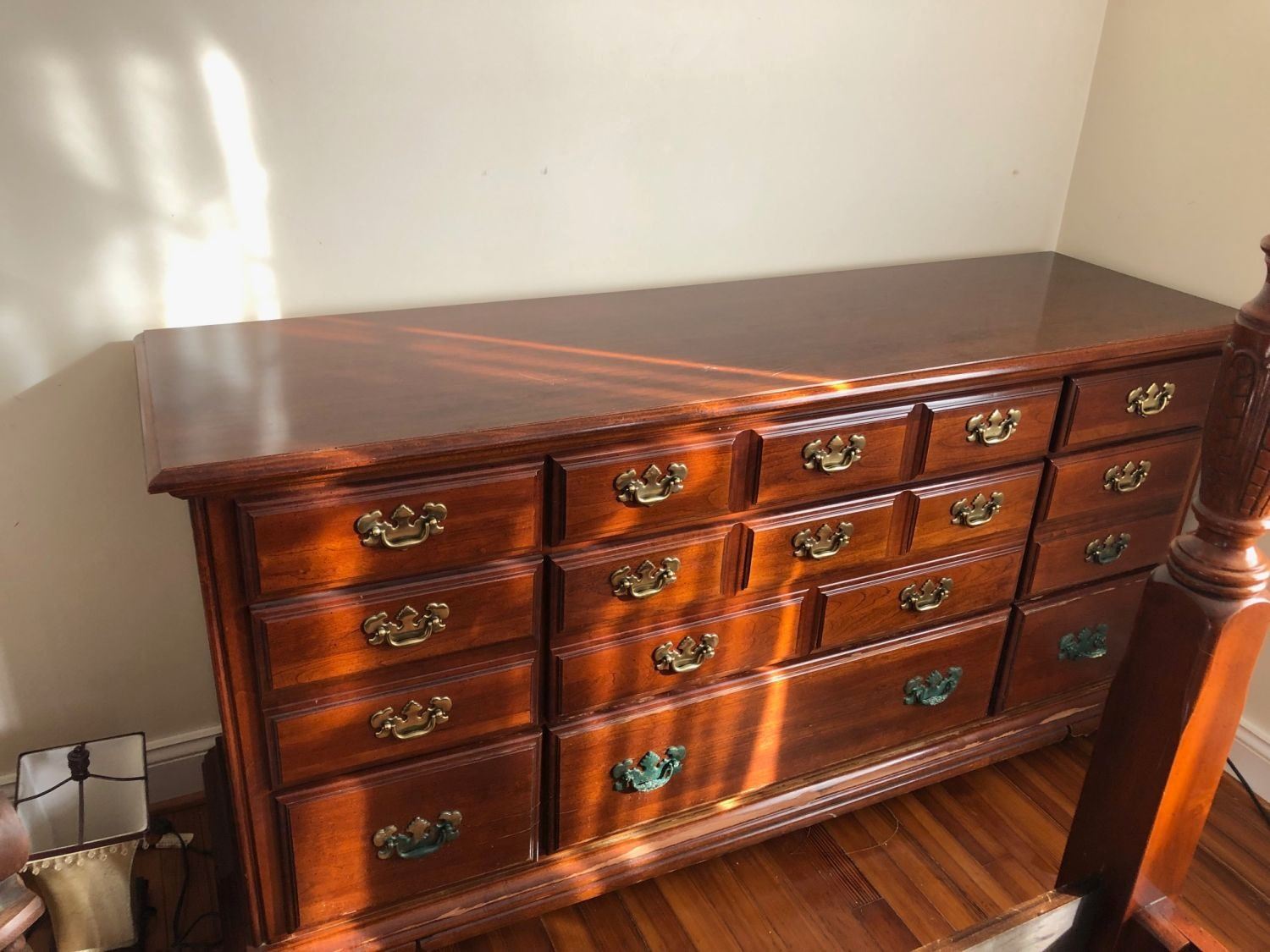 Beautiful Cherry Bedroom Set - Set includes a beautiful high 4 poster bed, a bureau and night table, these are great pieces.