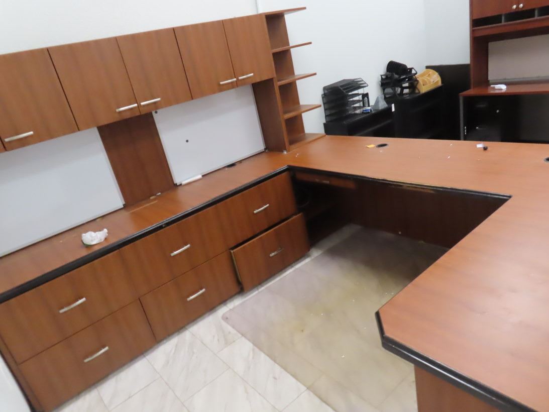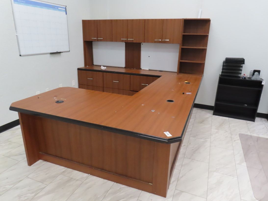 Cherry Mica Style Large Executive U Desk w/Upper, 2 Drawing Boards