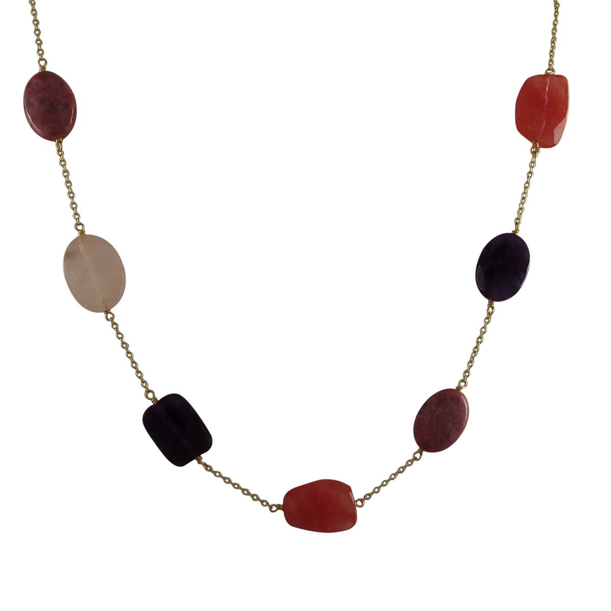 Cherry Quartz And Amy Combination Semi Precious Faceted Chunky Stones On Gold Plated Brass Chain, 18" 2"