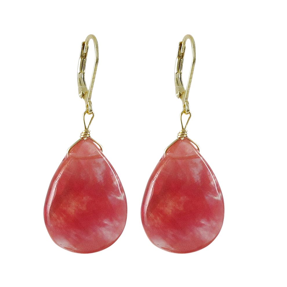 Cherry Quartz Semi Precious Stone On Gold Tone Sterling Silver Lever Back Earrings -1.87" (Approximately)