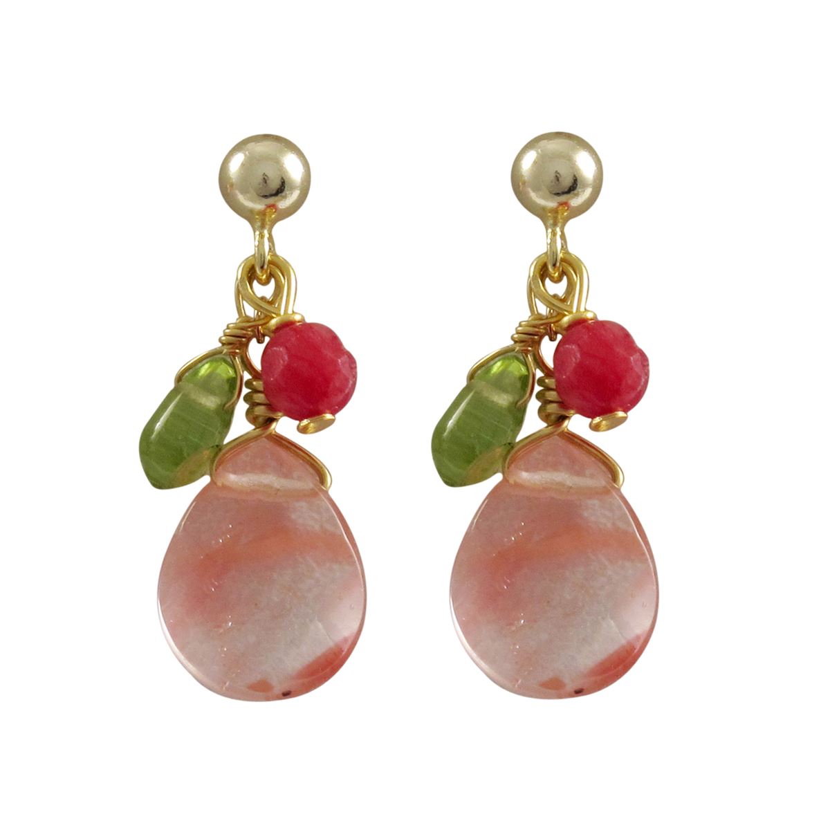 Cherry Semi Precious Stone Gold Filled Post Earrings-0.87"