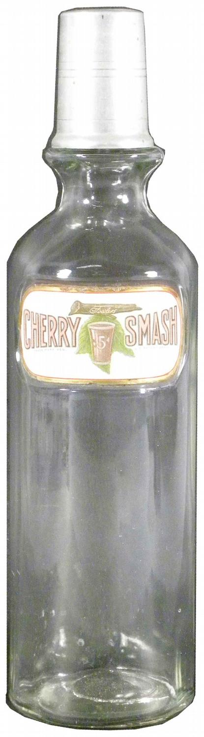 Cherry Smash Label Under Glass Syrup Bottle. No chips or cracks. Excellent condition. 12 inches tall.