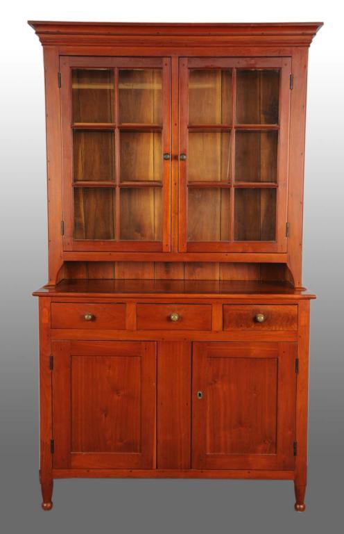 Circa 1860. All original. Three dove tailed drawers, two doors with six glass panels each and solid bottom door. Cupboard has been refinished approximately 50 to 60 years ago. Antique Furniture Condition (Excellent). Size 8' T.