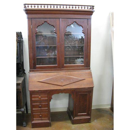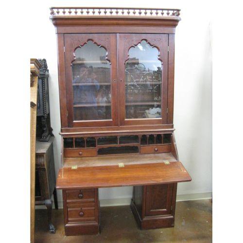 Rosewood or Cherry Drop front desk, with stick and ball top railing
