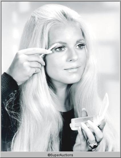 Cheryl Ladd from The Max Factor Collection / (2) 8 x 10 Black & White Photographs of Cheryl Ladd Applying Shimmer-On Eyes Make-Up / (2) 8 x 10 Black & White Photograph of Cheryl Ladd with Fresh Fruit Lip Gloss / (4) 8 x 10 Black & White Photographs of Cheryl Ladd Applying Nail Polish / (1) 8 x 10 Black & White Photograph of Cheryl Ladd and Pan-Stik Make-Up / (1) 8 x 10 Black & White Headshot Photograph of Cherly Ladd, photograph has writing in ink on bottom left and is stamped "Max Factor & Co. Photograph By David Kovar Hollywood, California on reverse