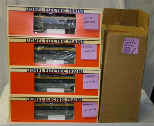 #619153 Chesapeake & Ohio Streamline Passenger Set includes 619145 Combo Car, 619146 Aluminum Passenger Car, 619147 Alum. Passenger Car, 619150 Observation Car. In original box and original shipping box.