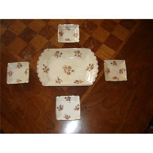 BOTTOM LINE PRICING FOR SPRING INVENTORY REDUCTION. </td></tr><tr> <td> </td></tr><tr> <td>Reference #: 1723</td></tr><tr><td>Condition:VERY GOOD</td></tr><tr><td>Year:1897-1890</td></tr><tr><td>Country:USA</td></tr><tr><td>Maker:D.F. HAYNES & SON/CHESAPEAKE POTTERY</td></tr><tr><td>Title:Chesapeake Pottery/Haynes Butter Set c. 1897-90</td></tr><tr><td>Style:LG. BUTTER TRAY/4 BUTTER PATS</td></tr><tr><td>Materials:PORCELAIN</td></tr><tr><td>Type:ARUNDEL GAILLARDIA</td></tr><tr><td>Location:Penn Valley, PA</td></tr></table>