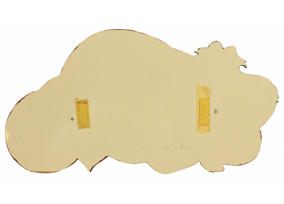 (Disneyland, 1970s) A gorgeous, hand-painted sheet metal figural sign of Alice in Wonderland’s, “Cheshire Cat”. Most likely used in the Mad Hatter Shop or another of the Fantasyland retail outlets, the sign measures 11 x 21 in. In very good condition, with wear.  There are two screws sheared off from the original mounting.