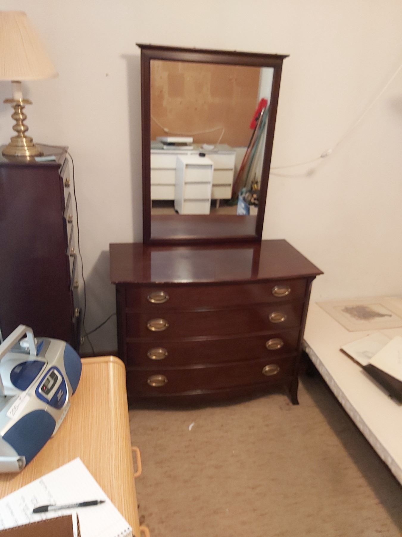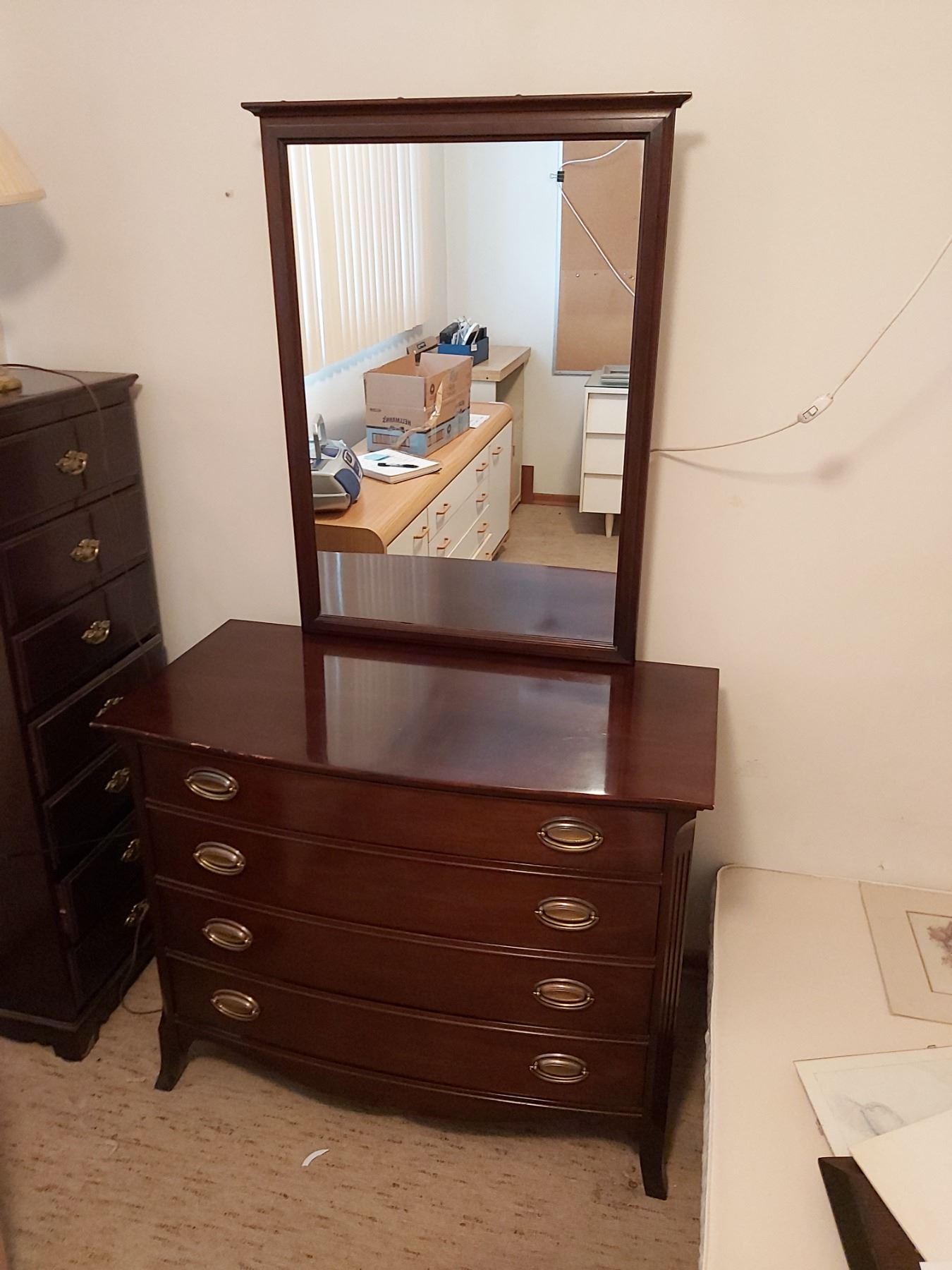Chest of Drawers with Mirror 40" wide x 20 1/2" deep x 32" high without mirror & 69 1/2" high with mirror