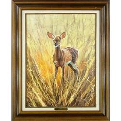 Chester Fields (b.1945) (Washington) Oil on Board, "Bambi," 1981, 25" x 18", signed lower right, Est $2,500 - $3,500