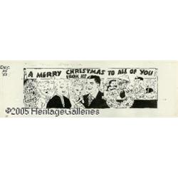 <B>Chester Gould - Dick Tracy Daily Comic Strip Original Art, dated 12-25-53 (The Chicago Tribune, 1953).</B></I> Oh, by golly, it's a holly, jolly Christmas with Dick Tracy and his family and friends, from the Christmas daily from December 25, 1953. They're all here... Dick Tracy, Tess Trueheart, Dick Tracy, Jr., B. O. Plenty, Gravel Gertie and Sparkle Plenty wishing you a happy holiday season. It's a feast of good cheer measuring 5" x 16.5" and in Excellent condition. <I>From the collection of Larry Doucet.</B></I> l