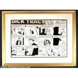 Chester Gould - Original Comic Strip Art for Dick Tracy Sunday dated 12-3-61 (The Chicago Tribune, 1961). Dick Tracy, America's favorite plainclothes detective, fights crime in this inspired Sunday by series creator Chester Gould. Featuring many of the strip's main characters, including Sam, Junior, the Chief and Tess, this strip is made up of fourteen individual panels that have been pasted to a larger board. In excellent condition, the strip has been framed to an overall size of approximately 26.75" x 35.75", with an image area of approximately 17.5" x 26.5". It is signed by the artist in the last panel. Important notice: We expect to be auctioning lots at the rate of 200-250 per hour. Sometimes eBay Premier live bid software cannot keep up with that pace, so we strongly recommend that you place a realistic proxy bid now as insurance to avoid disappointment. Also please note that all Heritage/CAA lots purchased through eBay Premier carry a 20% Buyer's Premium. Please make sure you read the Terms and Conditions.