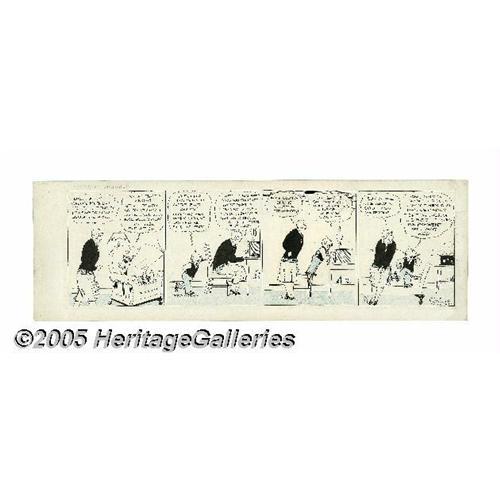 <B>Chester Gould - Wordy Watkins Try-Out Daily Comic Strip Original Art (circa 1925).</B></I> Well before October 1931, when <I>Dick Tracy</B></I> first appeared in the pages of the Chicago Tribune, cartoonist Chester Gould struggled to make his mark in the burgeoning comic strip marketplace. Gould left Pawnee, Oklahoma to pursue his career in Chicago, where he produced numerous try-out strips, including <I>Wordy Watkins</B></I>, a bubbly, domestic daily. This strip demos Gould's sense of humor, rarely seen in the more serious repertoire he was later to produce. The daily has an image area of 20"" x 6"", and the art is in Excellent condition. <BR><BR><B>Important notice:</B> Heritage usually auctions material at the rate of 200-250 lots per hour. On some occasions eBay Live bid software or the Internet may not be able to keep up with the pace of the auction. We recommend placing a realistic absentee bid now as insurance to avoid disappointment. Occasionally the auctioneer may eliminate or reject an eBay Live bid, and the auctioneer may also reopen a lot after the close of the eBay live bidding (usually because we missed an audience bid), and may reject your bid even if it shows you as the winning bidder. By bidding via eBay Live, you agree that Heritage may award the lot to another bidder at its sole discretion under the circumstances described above or any other reasonable circumstances. Since eBay bids are not shown to us until we open the lot on the floor, we treat those bids just like floor bids. In most cases the floor responds before the eBay bid is presented to us, due to Internet lag time, so for consistency we have made it a policy that floor bids are always considered first over tie eBay live bids. Also please note that all Heritage lots purchased through eBay Live carry a 20% Buyer's Premium. Please make sure you read the Terms and Conditions before you bid. This lot is being auctioned in conjunction with a live floor auction by Heritage Galleries & Aucti