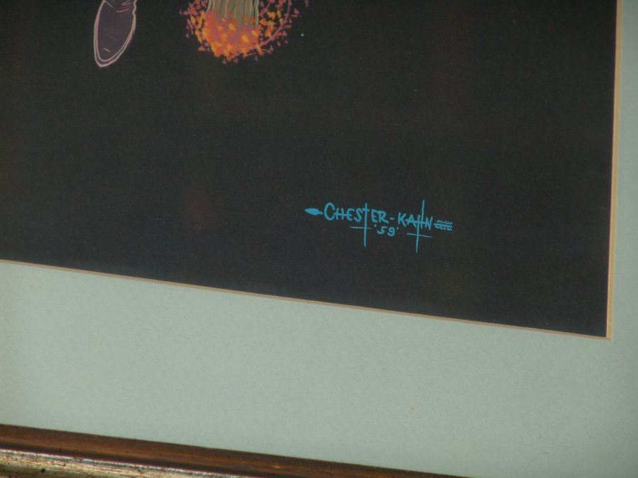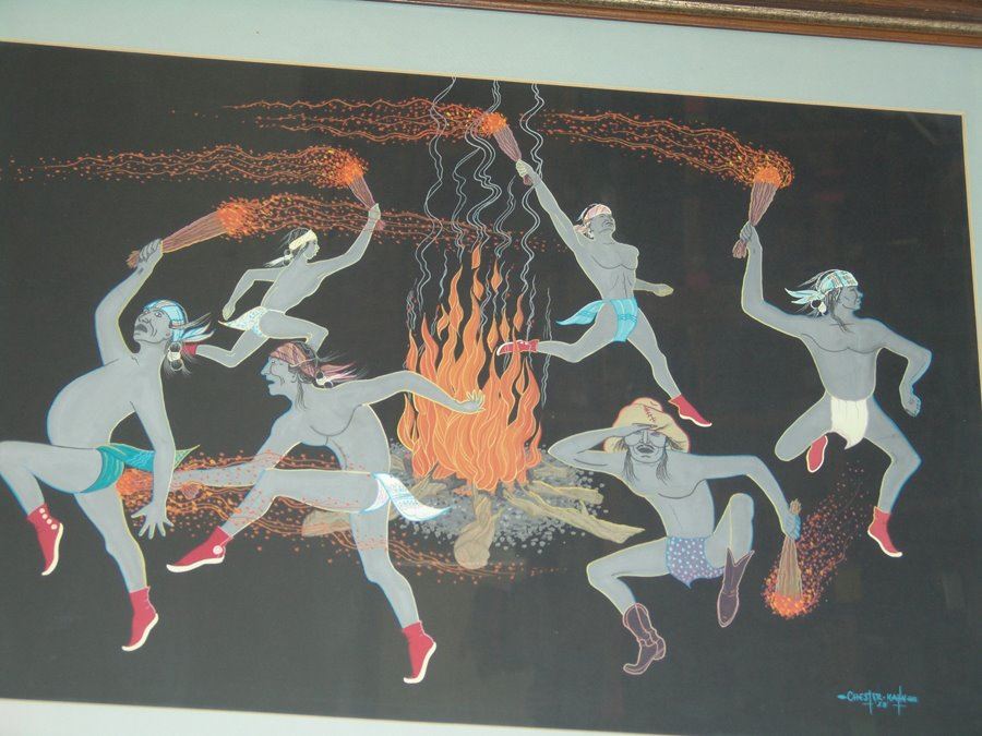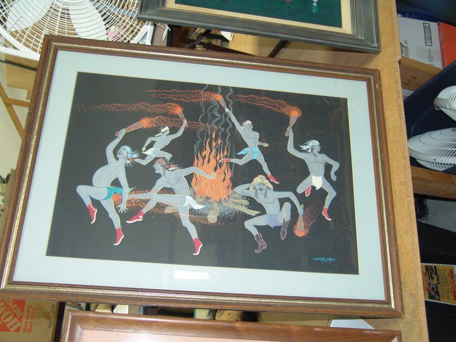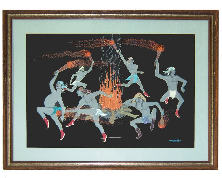 Large early signed original Gouache on black paper an exciting depiction of the fire dance. Very good condition. Matted and framed.,Ca. 1959,19" x 29" (26" x 36")
