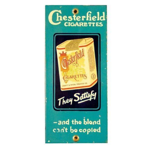 Chesterfield Cigarettes Porcelain Push. Near mint condition. 4 X 9 inches.