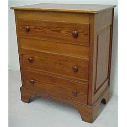 Chestnut Chippendale tall chest, three drawers, with hidden compartment under top drawer, on straight bracket feet, measures approximately 42" high x 36" across x 20 1/2" deep, early 19th C. Estimate 600/1200