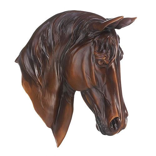 Chestnut Horse Bust Plaque **|**|** Add a dash of equine spirit to your home with this gorgeous chestnut-brown wall-mounted horse bust. The fine like-like detailing and glossy finish make this a best-in-show accent for any room.Description Details Item weight: 2.6 lbs.Product Dimensions: 9-1/2 x 4" x 12-1/2" high.Product Material: Polyresin.UPC Code: 849179023379.Packaging: 1 EA"
