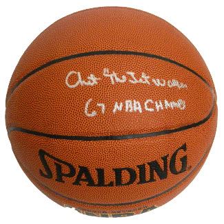 Chet Walker was drafted by the Syracuse Nationals and was named to the NBA's first All-Rookie Team in 1963. He followed the team to Philadelphia after his rookie season. He was a 7 time NBA All-Star Game. Walker played his final six seasons with the Chicago Bulls, and never averaged less than 19.2 points and 5.0 rebounds a game. In his 13-year career, Walker scored a total of 18,831 points. The 6–6 forward was an outstanding free-throw shooter, especially in his later years with the Bulls. He led the NBA with an accuracy rate of 85.9 percent in 1970–71, and ranked among the top-10 free-throwers five other times. Walker's speed and agility on the court earned him the nickname "Chet the Jet." Chet Walker has hand autographed this Spalding Indoor/Outdoor Basketball with "The Jet" and 67 NBA Champs inscriptions. Schwartz Sports Hologram and Certificate of Authenticity from Athlon Sports.