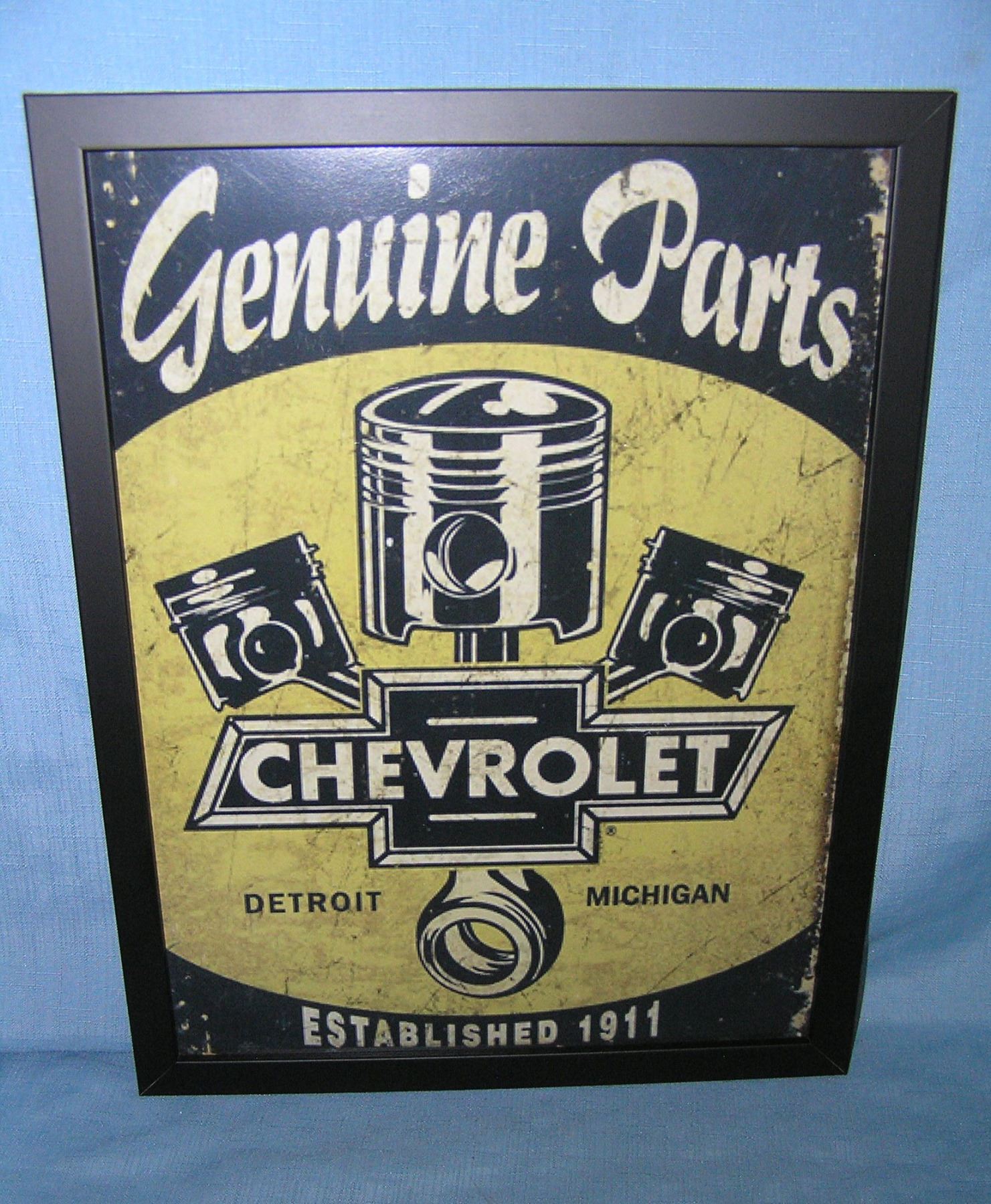Chevrolet Genuine Parts framed retro style advertising sign printed on PVC hard board these signs are auctioned for there decorative and display purposes 12 inches by 16 inches est. value $75.00-$80.00