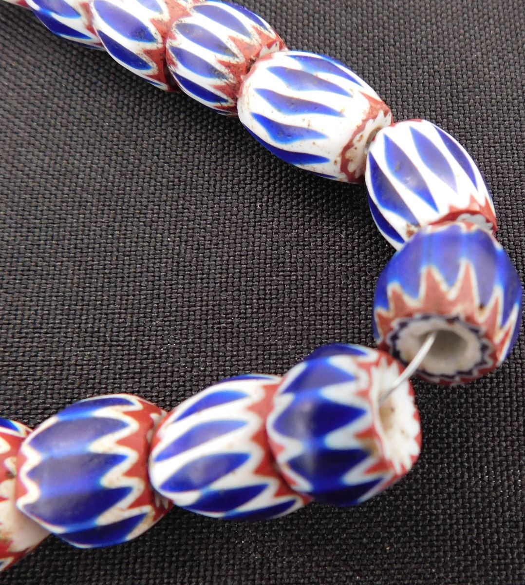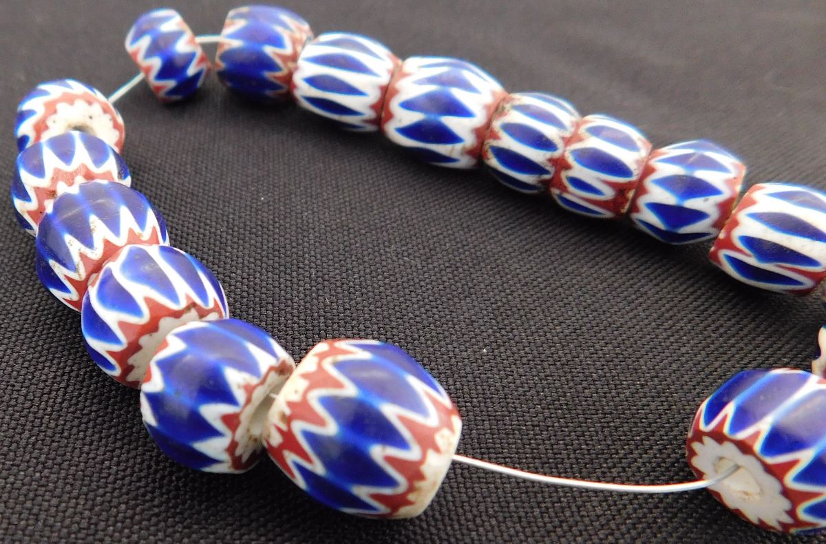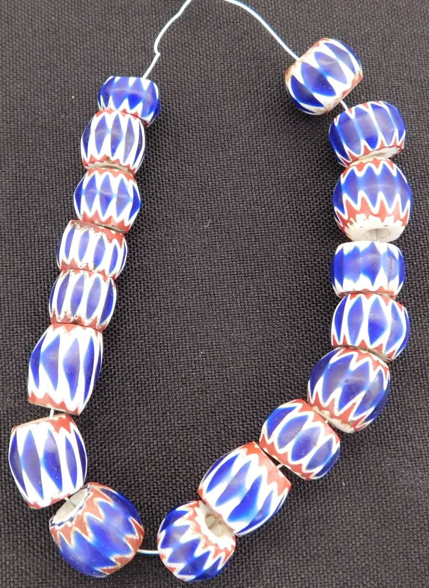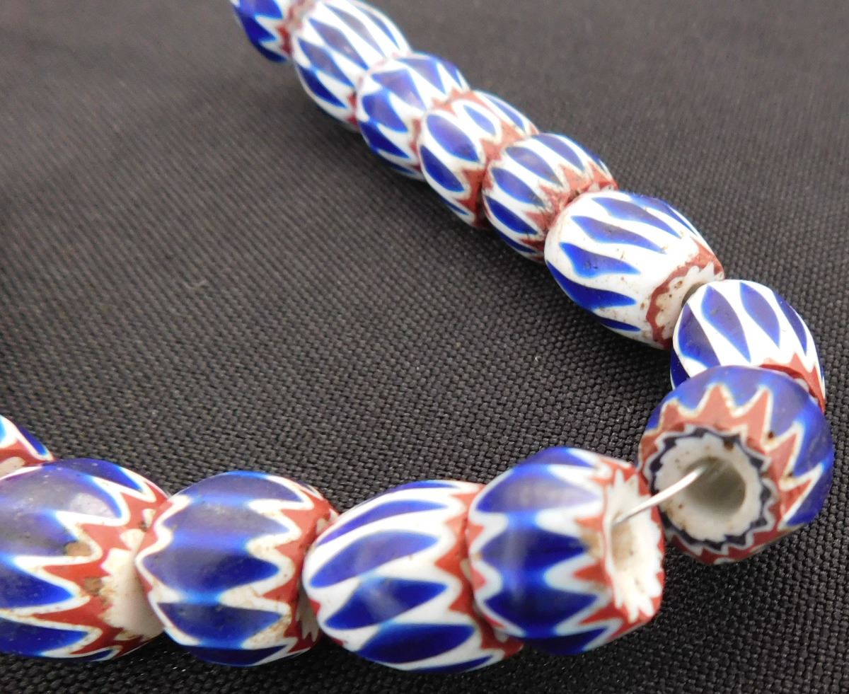 Great approximately 18th century glass beads on metal and wire. These came from Italy and were possibly traded to the Native Americans. The seventeen beads of various sizes rating from .25 to .5 inches. There are minor nicks and chips - See images. Shipping $14.50