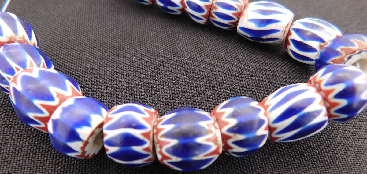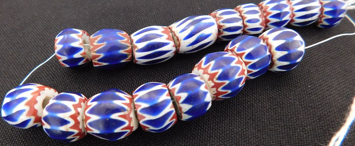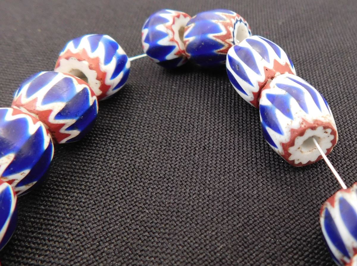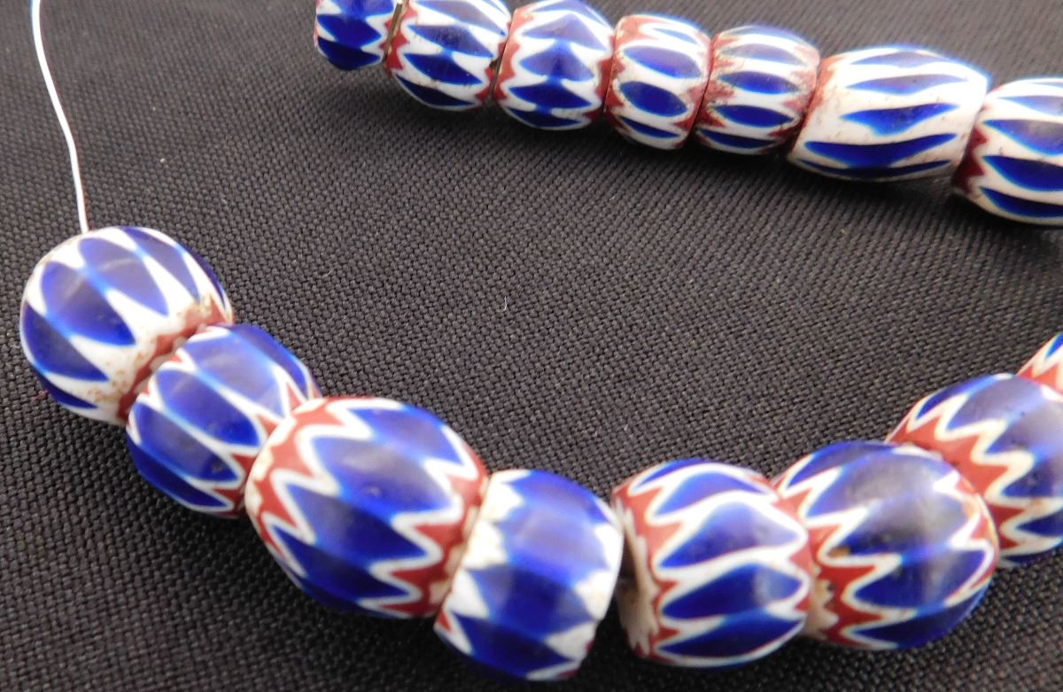 Great approximately 18th century glass beads on metal and wire. These came from Italy and were possibly traded to the Native Americans. The seventeen beads of various sizes rating from .25 to .5 inches. There are minor nicks and chips - See images. Shipping $14.50