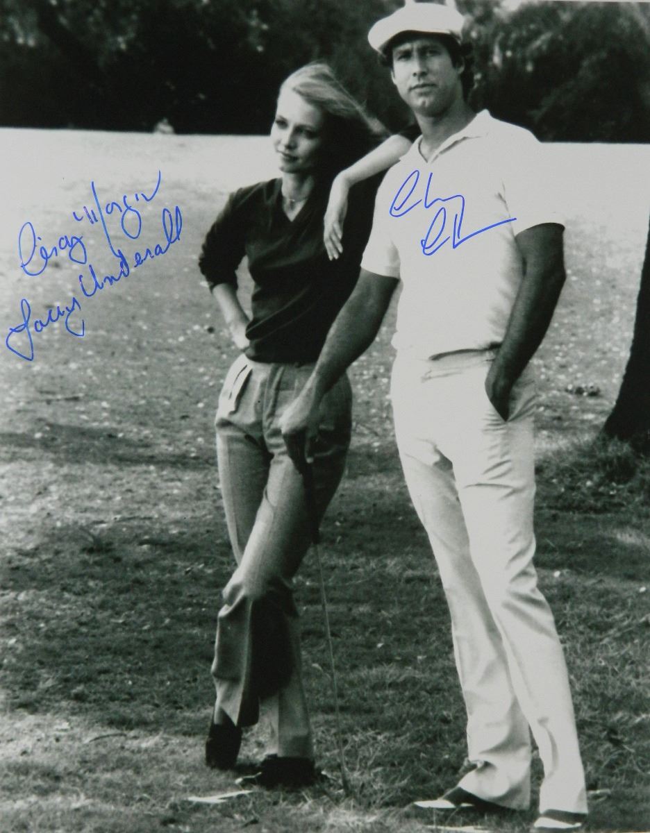 Chevy Chase and Cindy Morgan dual signed Caddyshack black and white 16x20 photo of characters Ty Webb and Lacey Underall with 'Lacey Underall' inscription. Item comes with a Schwartz Sports Memorabilia numbered tamper-proof hologram and Certificate of Aut