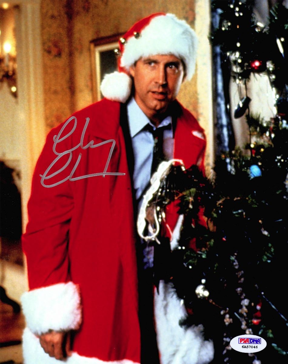 Chevy Chase signed Christmas Vacation standing next to Christmas tree 8x10 photo. Item comes with a PSA/DNA tamper evident numbered sticker and matching Certificate of Authenticity which can be verified online.