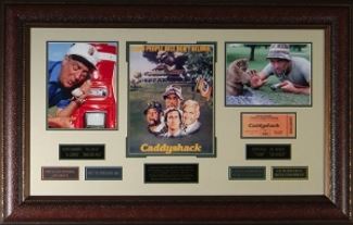 Caddyshack (1980) - An exclusive golf course has to deal with a brash new member and a destructive dancing gopher, featuring the talents of Chevy Chase, Rodney Dangerfield, and Bill Murray.* Unsigned Publicity Masterprint 11x17" movie poster* Museum Quality Leather Framed as shown to an overall size of 20x28"* The perfect addition to complement any Home Theater Collection