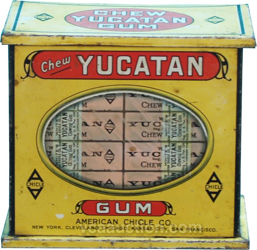 "Chew Yucatan Gum" Store Countertop Tin Container w/ attached lid