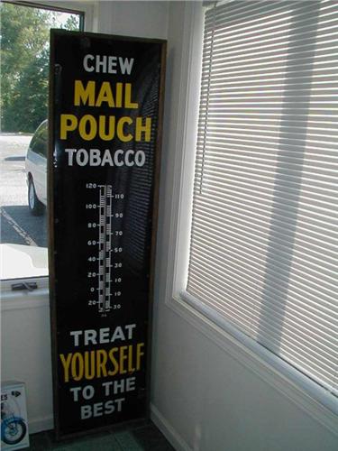 fantastic Chew mail pouch all blue all porcelain 6'1” x 20” wide framed porcelain thermometer – a beauty!
