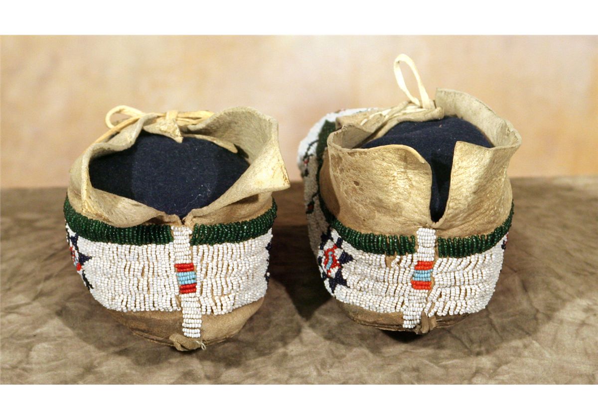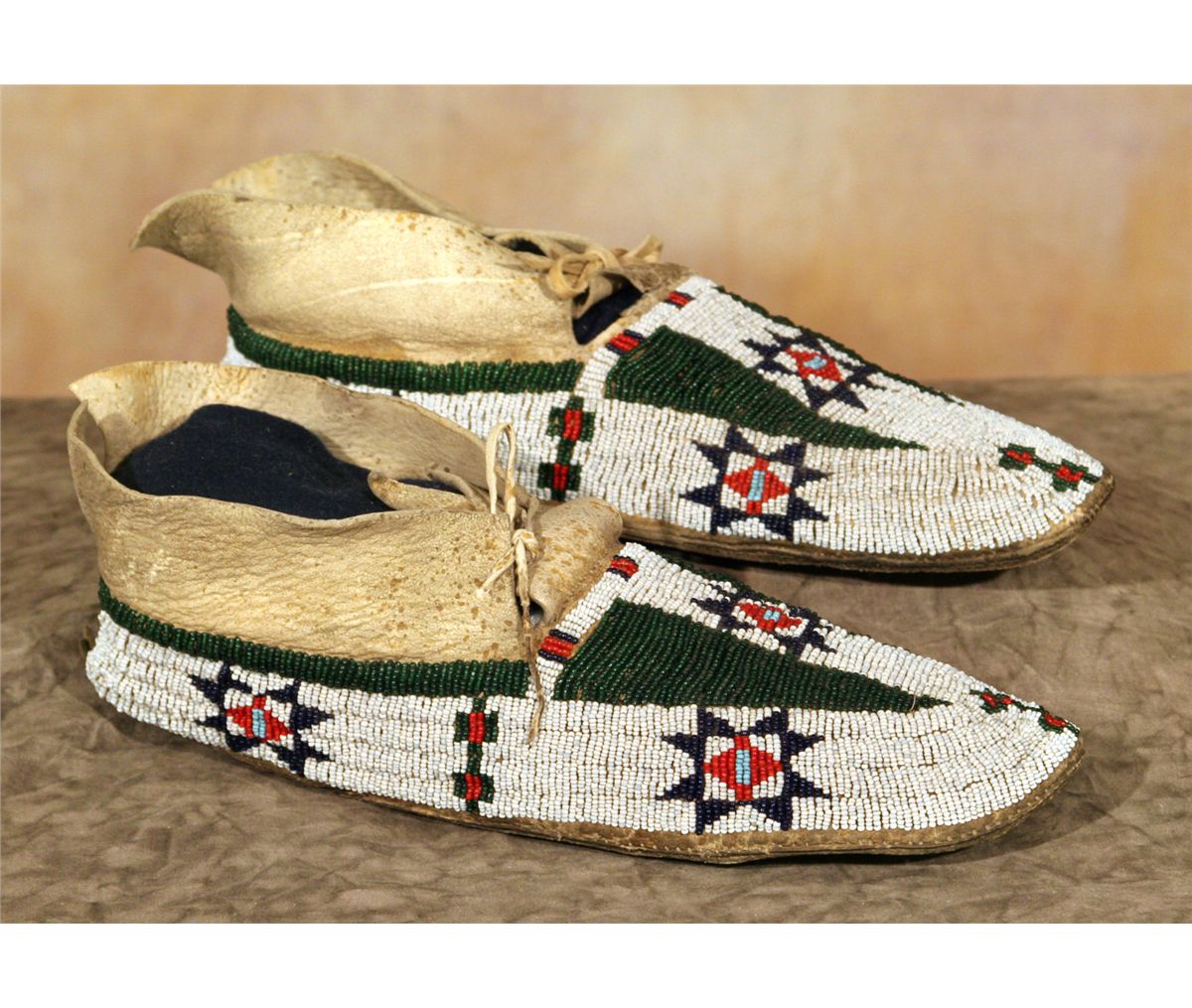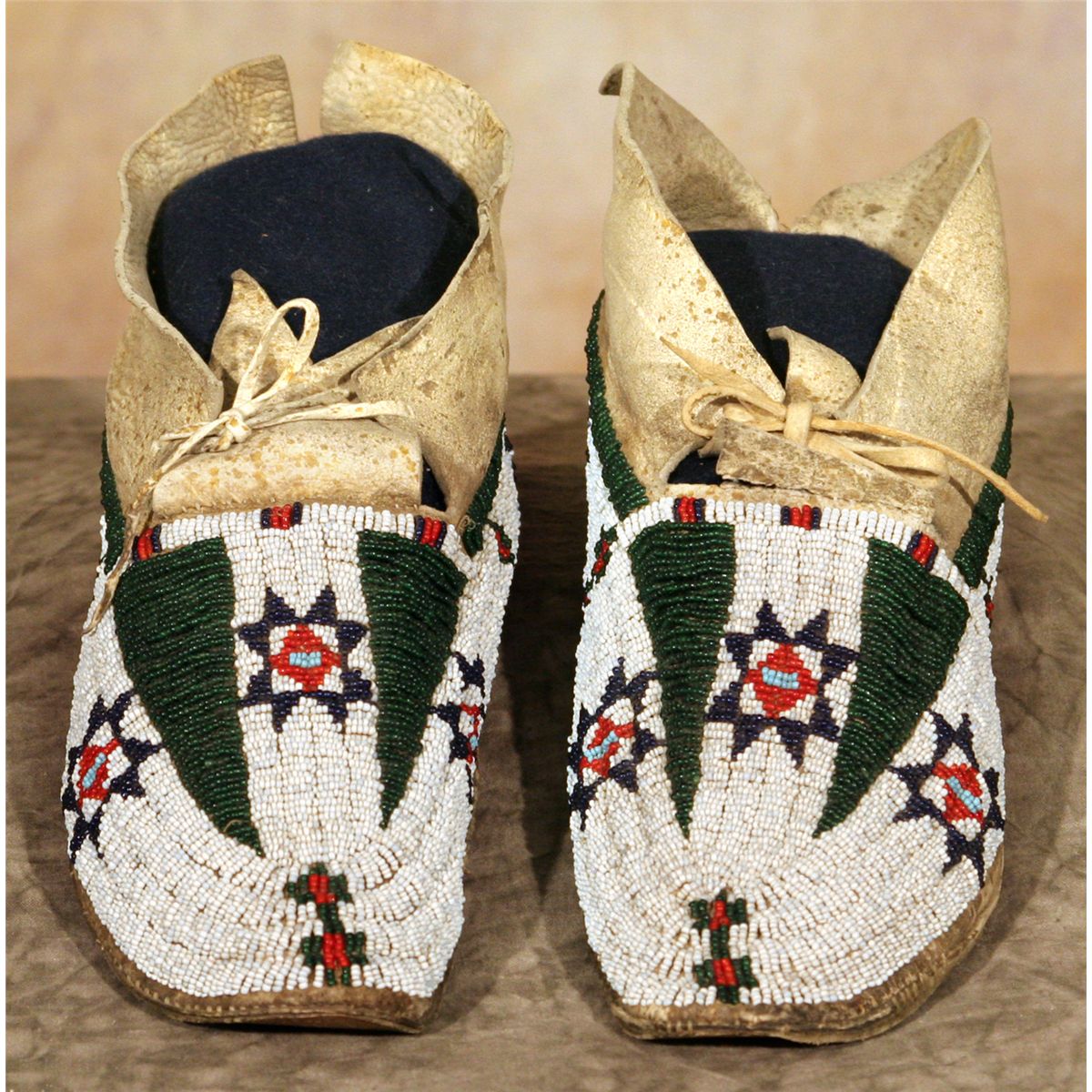 Cheyenne Moccasins. 10.5" long. Fully beaded in classic designs and colors. 19th century. Provenance: Collection of Dr. Delwin and Karen Bokelman, PA.