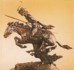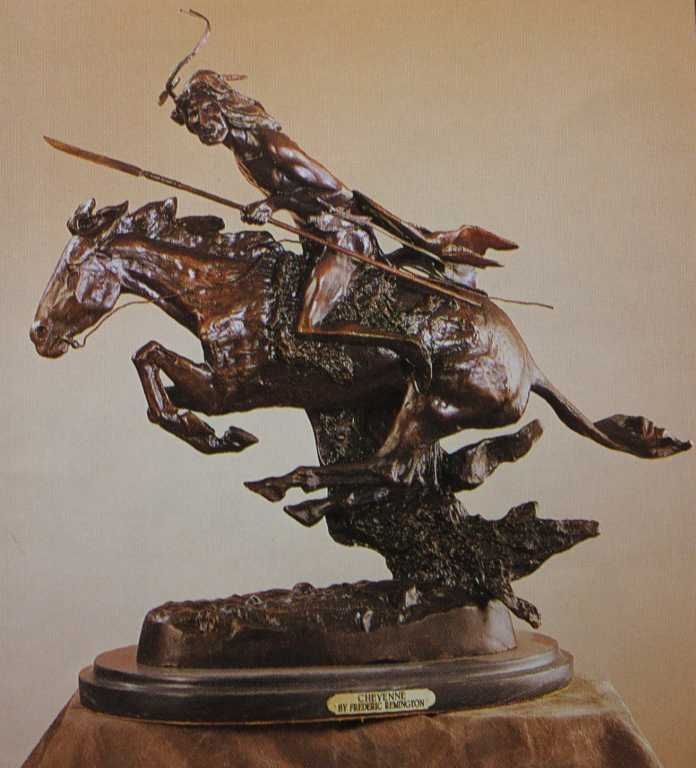 "Cheyenne" Bronze Sculpture - After Remington - Museum Brown Patina - Mounted On A Fine Italian Marble Base - Beautifully Detailed - Signed - Mint Condition - 9.5"H X 13"H - Lost Wax Cast Bronze