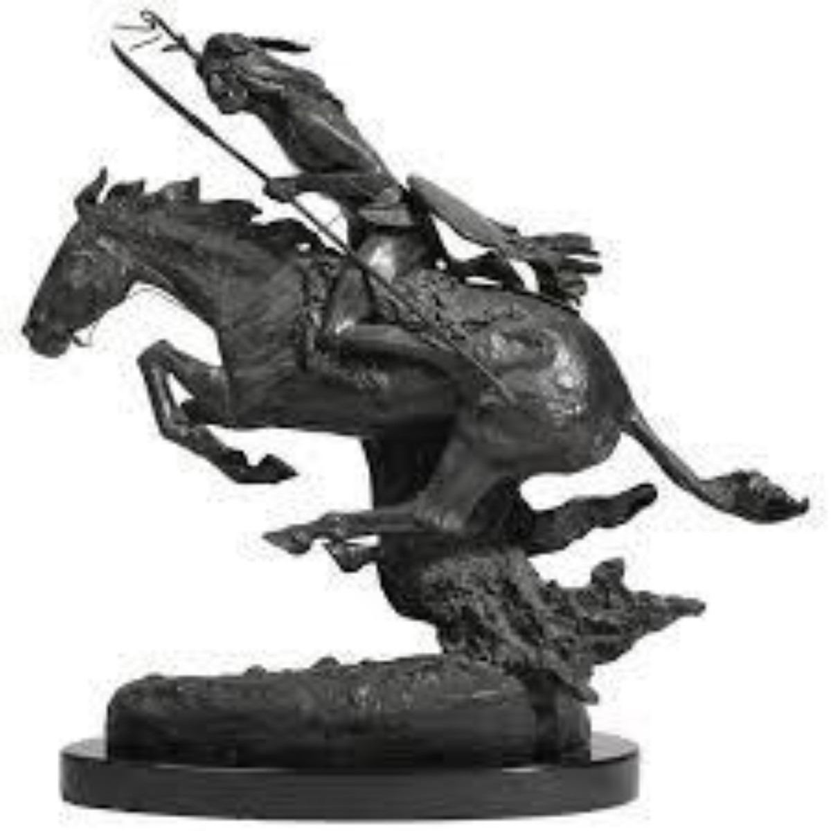 Medium 11 1/2" H x 11" L - This is not an original Frederic Remington sculpture for if it was, it would be worth a great fortune. This is a masterful lost-wax bronze molded sculpture masterfully recreated in the Frederic Remington style. There are many steps in this intricate process. If interested, you may read about this process here: https://en.wikipedia.org/wiki/Lost-wax_casting