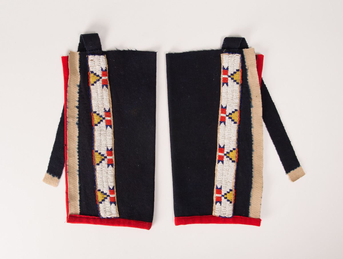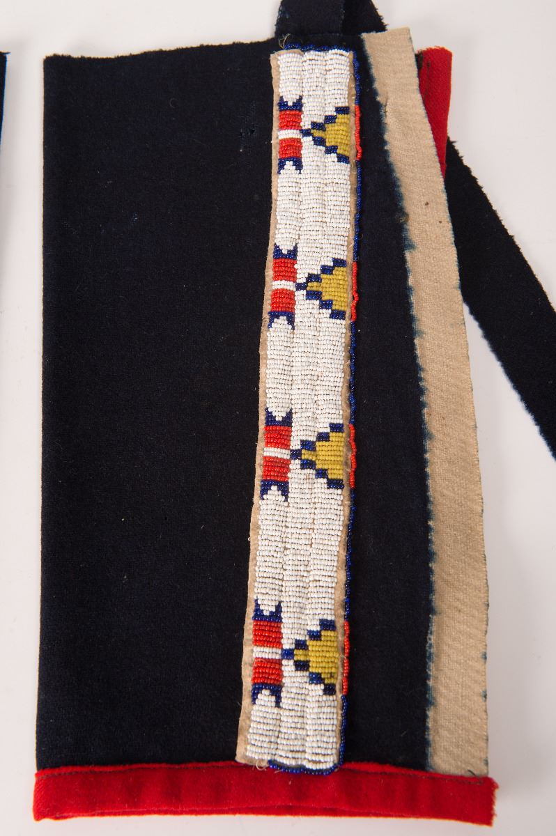 Cheyenne Child's Leggings. 14" x 7" cloth with a 13" x 1 ½" beaded panel. Unusually small size. Circa 1930s.