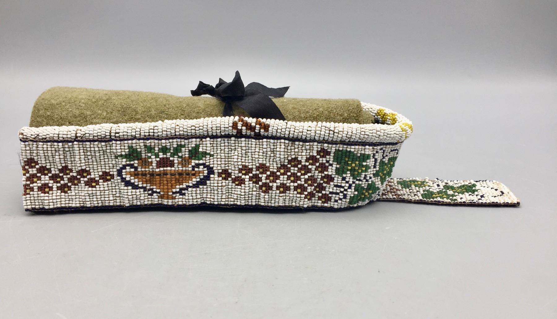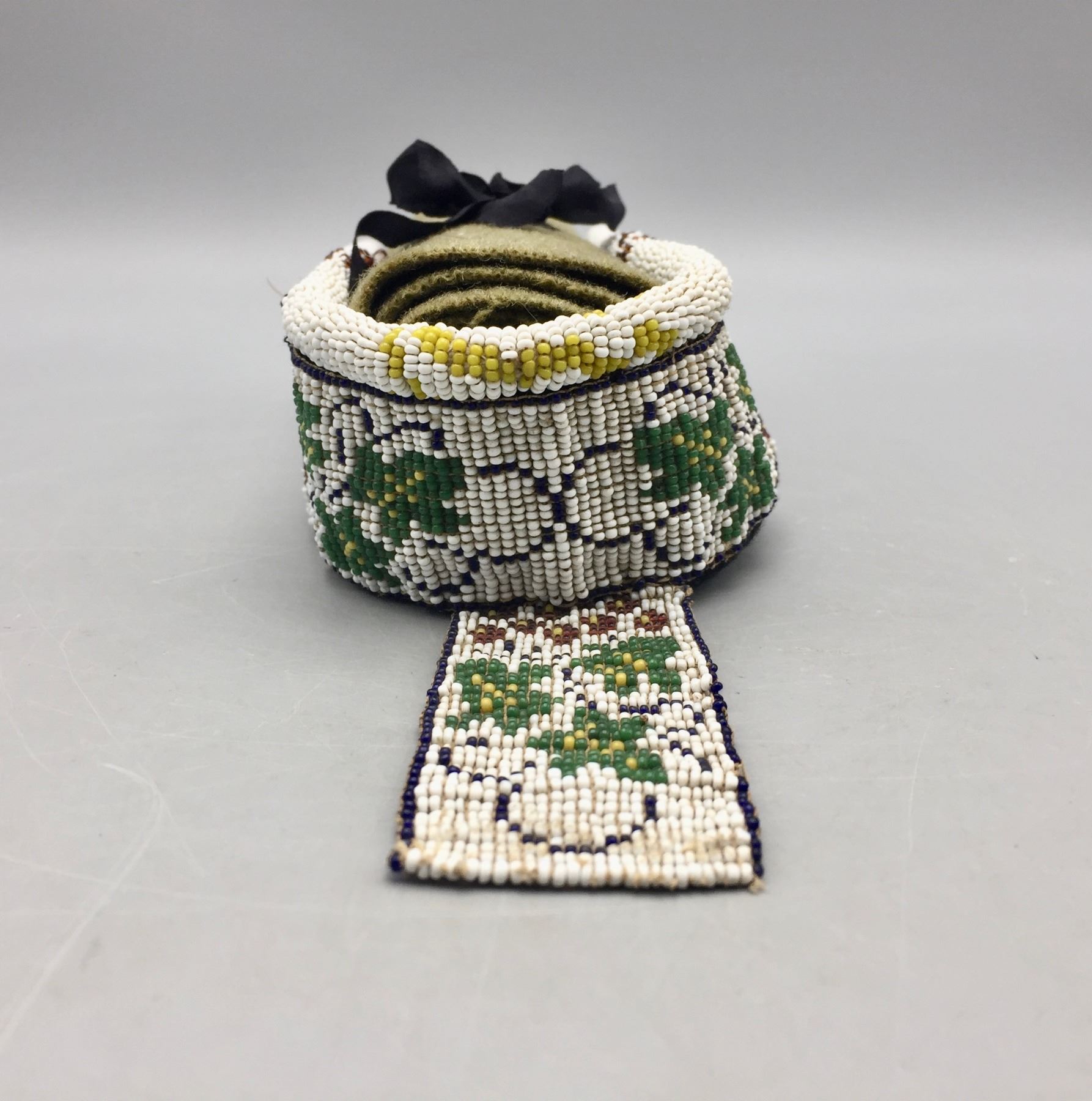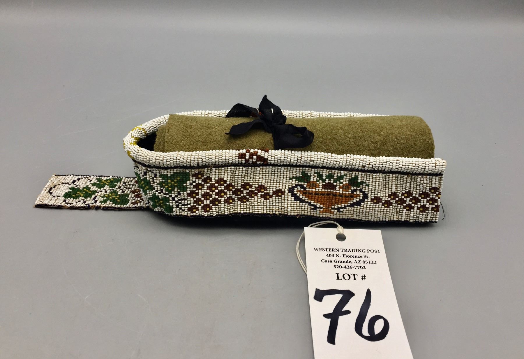 Description: For sale in this lot is a vintage, doll-sized beaded cradle. This is a Cheyenne, “soft cradle” with a hanger and it has very intricate beadwork with a flower design around the cradle. This is a nice piece. Maker: Unknown Cheyenne bead artist. Approx. Age: Vintage. Size: 3-5/8”w x 8-1/2” long. Condition: Good for its age, normal wear expected. Please look closely at the pictures - they are an important part of our description. Shipping: There will be a $7 handling / packaging fee for shipping this lot. The actual cost of postage will be added on top of that.
