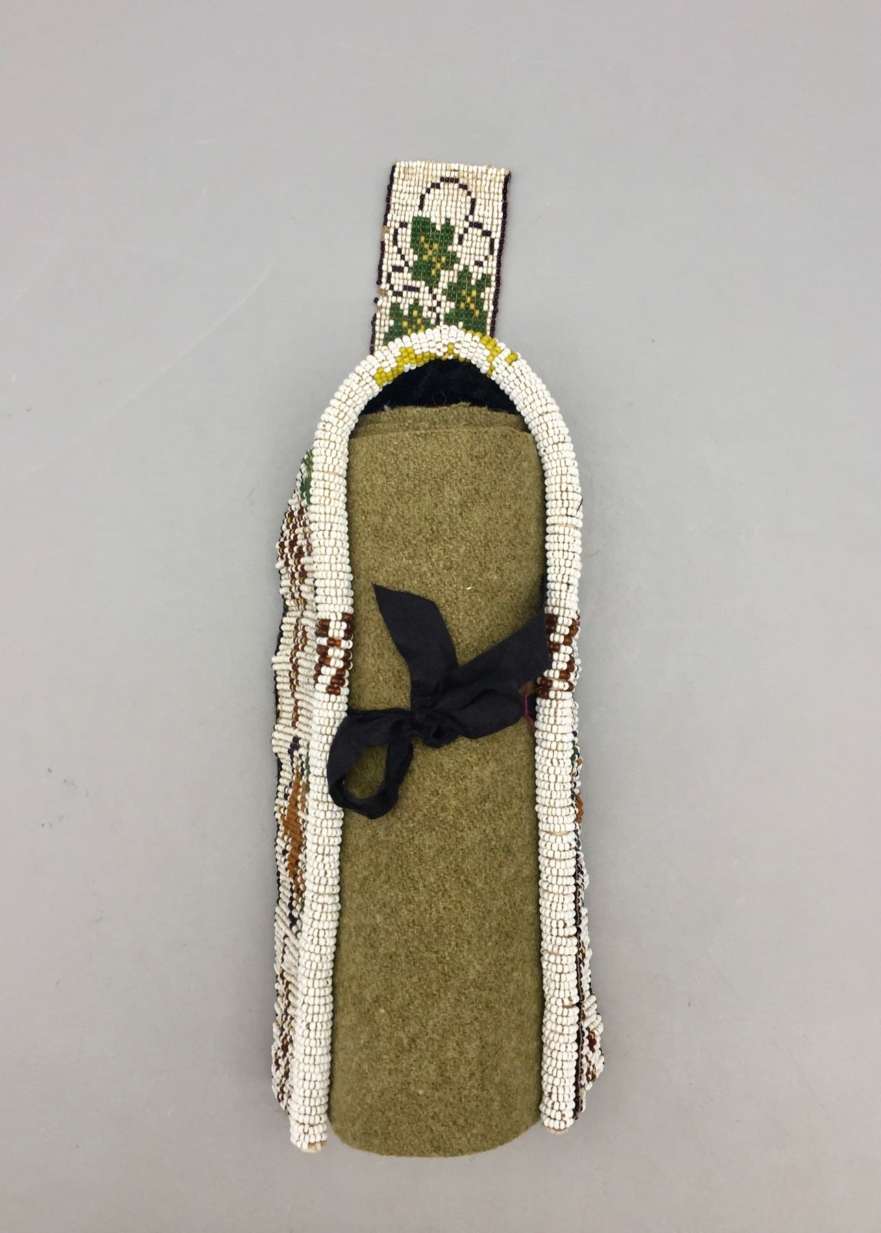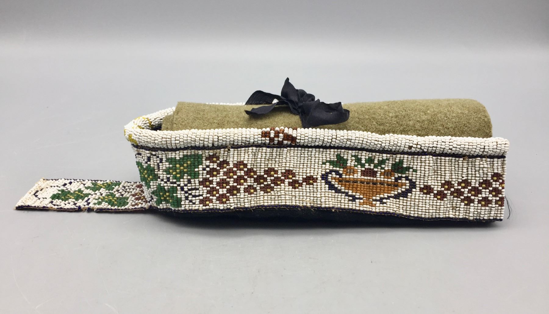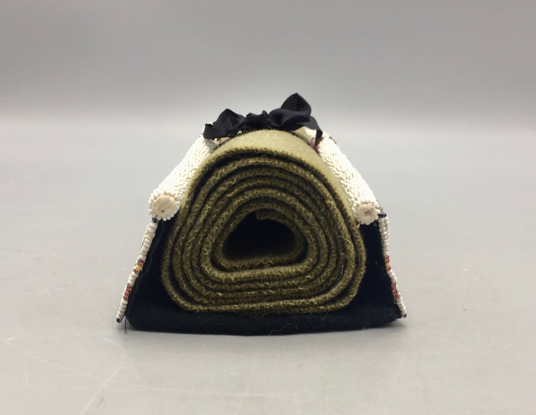 Description: For sale in this lot is a vintage, doll-sized beaded cradle. This is a Cheyenne, “soft cradle” with a hanger and it has very intricate beadwork with a flower design around the cradle. This is a nice piece. Maker: Unknown Cheyenne bead artist. Approx. Age: Vintage. Size: 3-5/8”w x 8-1/2” long. Condition: Good for its age, normal wear expected. Please look closely at the pictures - they are an important part of our description. Shipping: There will be a $7 handling / packaging fee for shipping this lot. The actual cost of postage will be added on top of that.