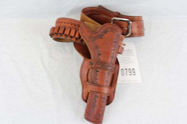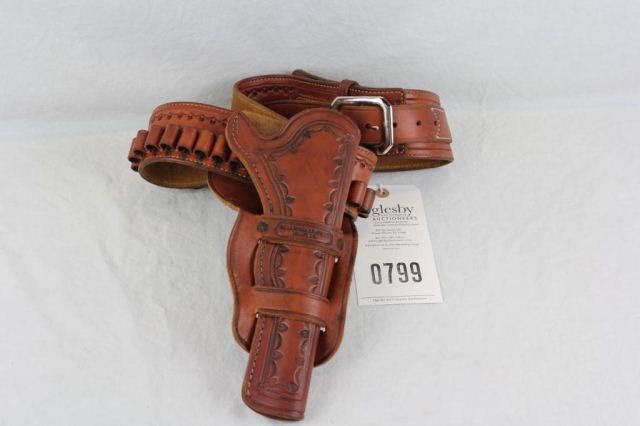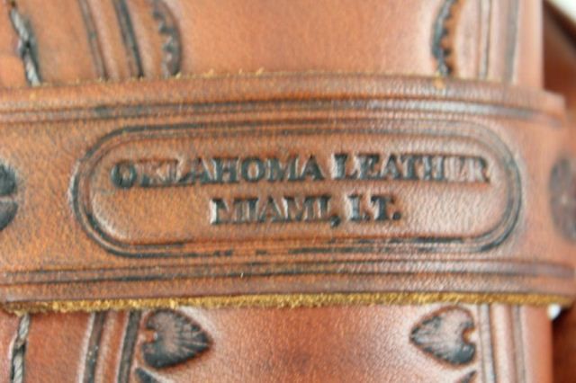 Leather Holster and belt in excellent condition. Made by Oklahoma Leather in Miami, OK. Model 501 belt marked for waist size 44".