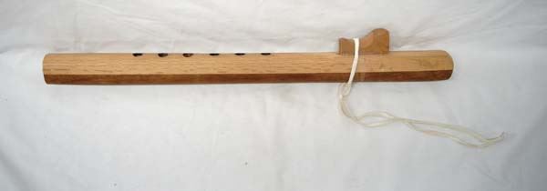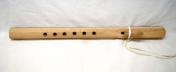 Large Native American Cheyenne Hand Carved Wooden Flute, white doeskin leather tie embellishment, measures 20''L x 3''H