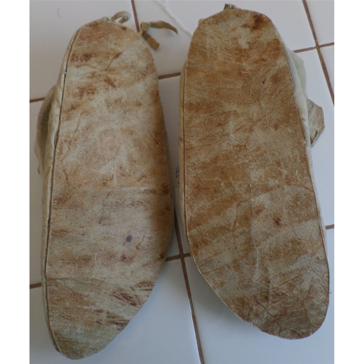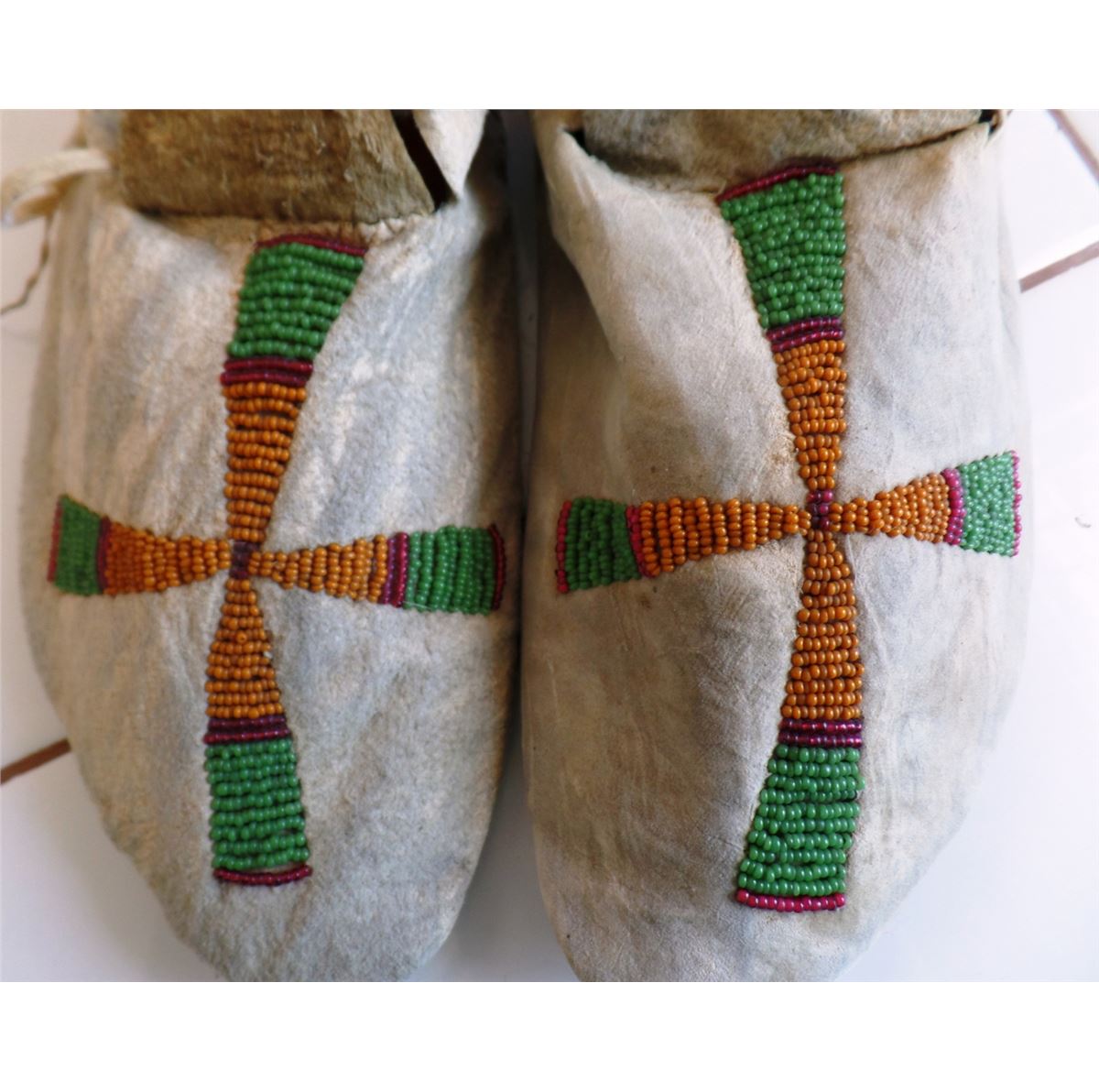 Cheyenne Moccasins made from deerhide and glass beads. Item is dated approximately 1880 and measures 9 1/2 x 4 inches. There on some stains and wear. Please note the very old beads. Shipping $14.50