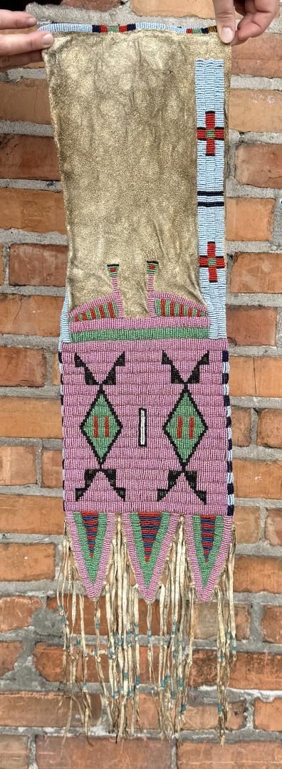 32 1/2" long with fringe, 8 5/8" wide. Last quarter of the 19th Century. A similar example is illustrated in Pipe Bags Tobacco Bags of the American Frontier by John Baldwin, page 7, plate number 020. Provenance: The Emily T. and Adolphus Andrews Collection of Native American Art