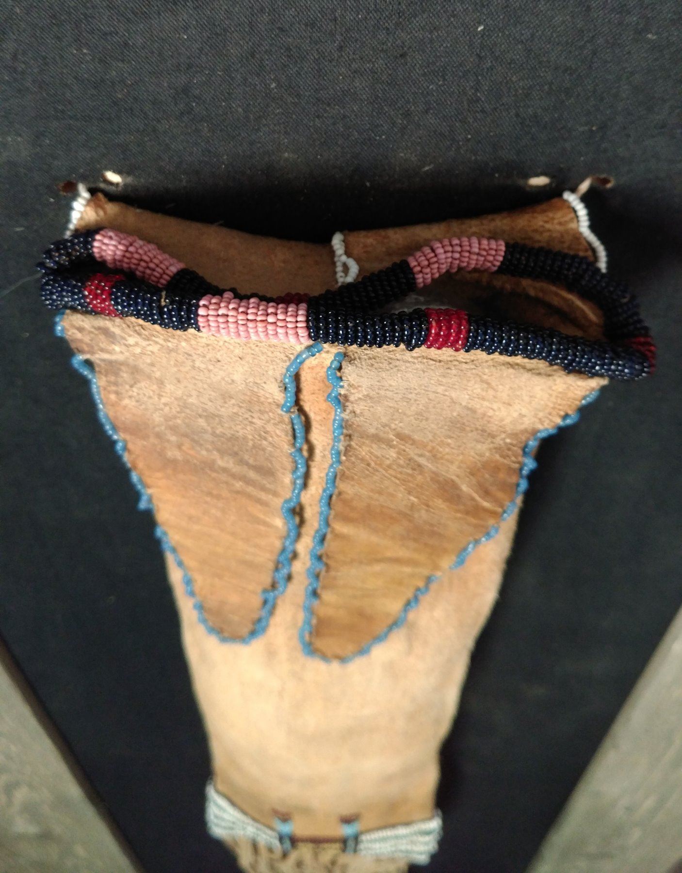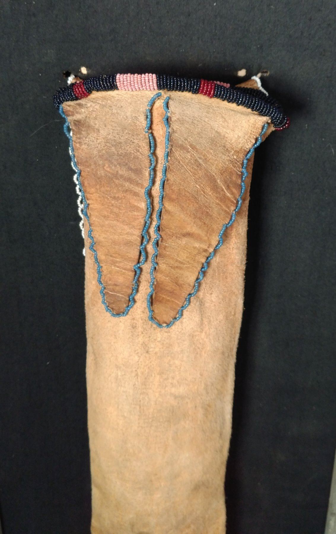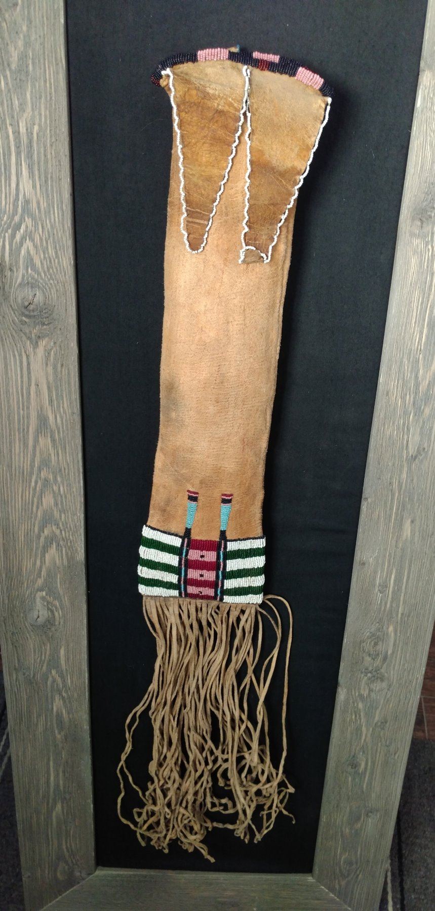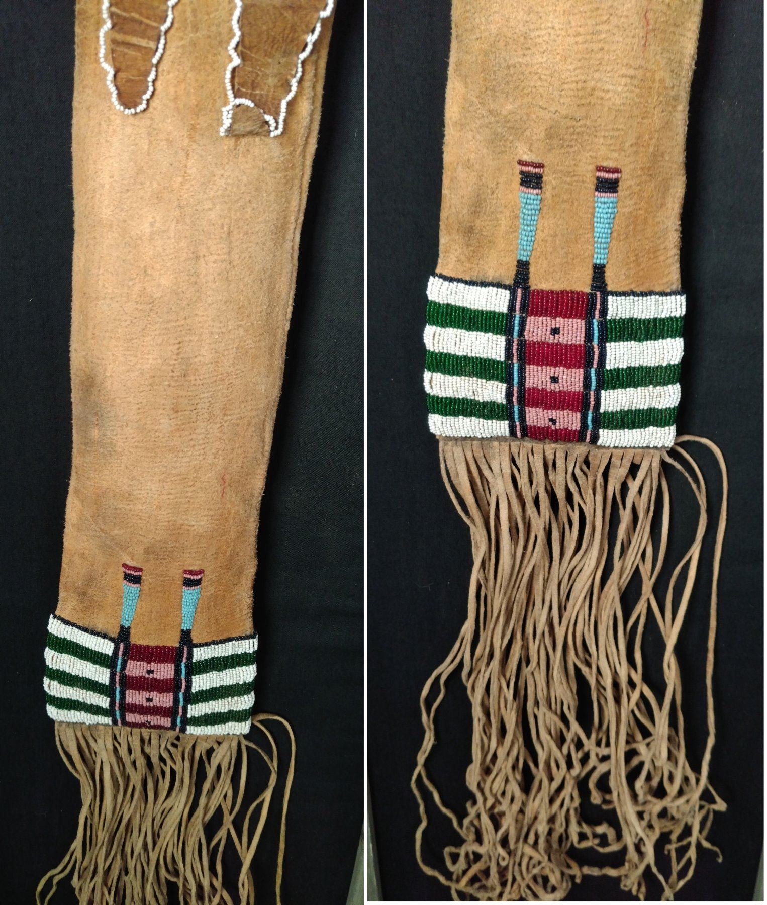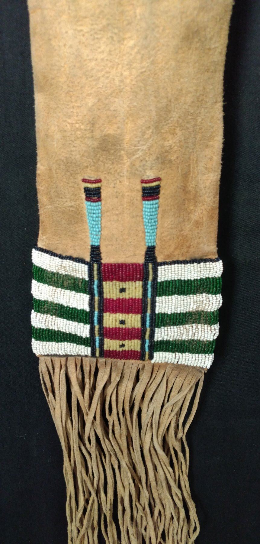 Cheyenne Pipe Bag, c. 1860s. Made of deerhide and glass beads, the item measures 4 3/4" x 31". Northern Plains. Frame not included. Condition: Good, see images. Shipping: $30.00 w/insurance and signature.