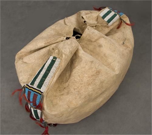 Cheyenne Storage Bag. 18" x 24". Wide beaded strips on hide. 19th century.Excellent condition. (est $1,500-2,000)