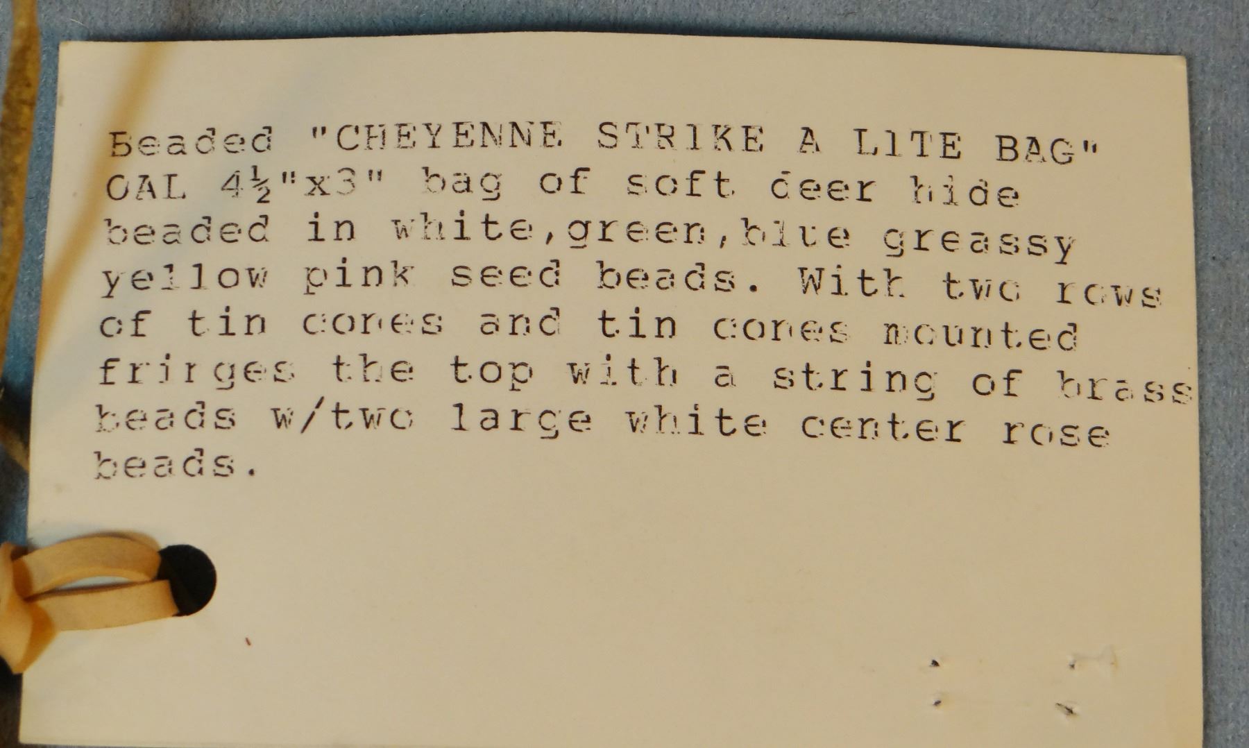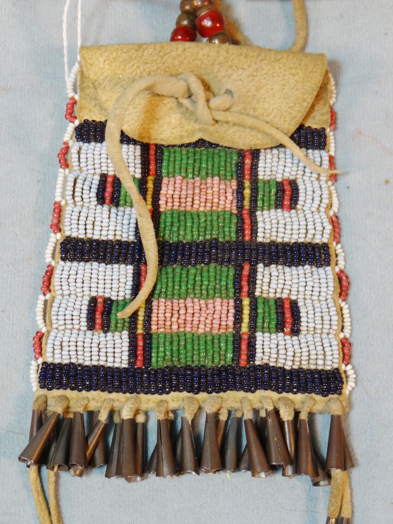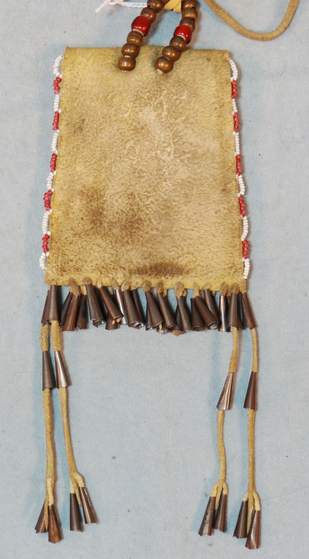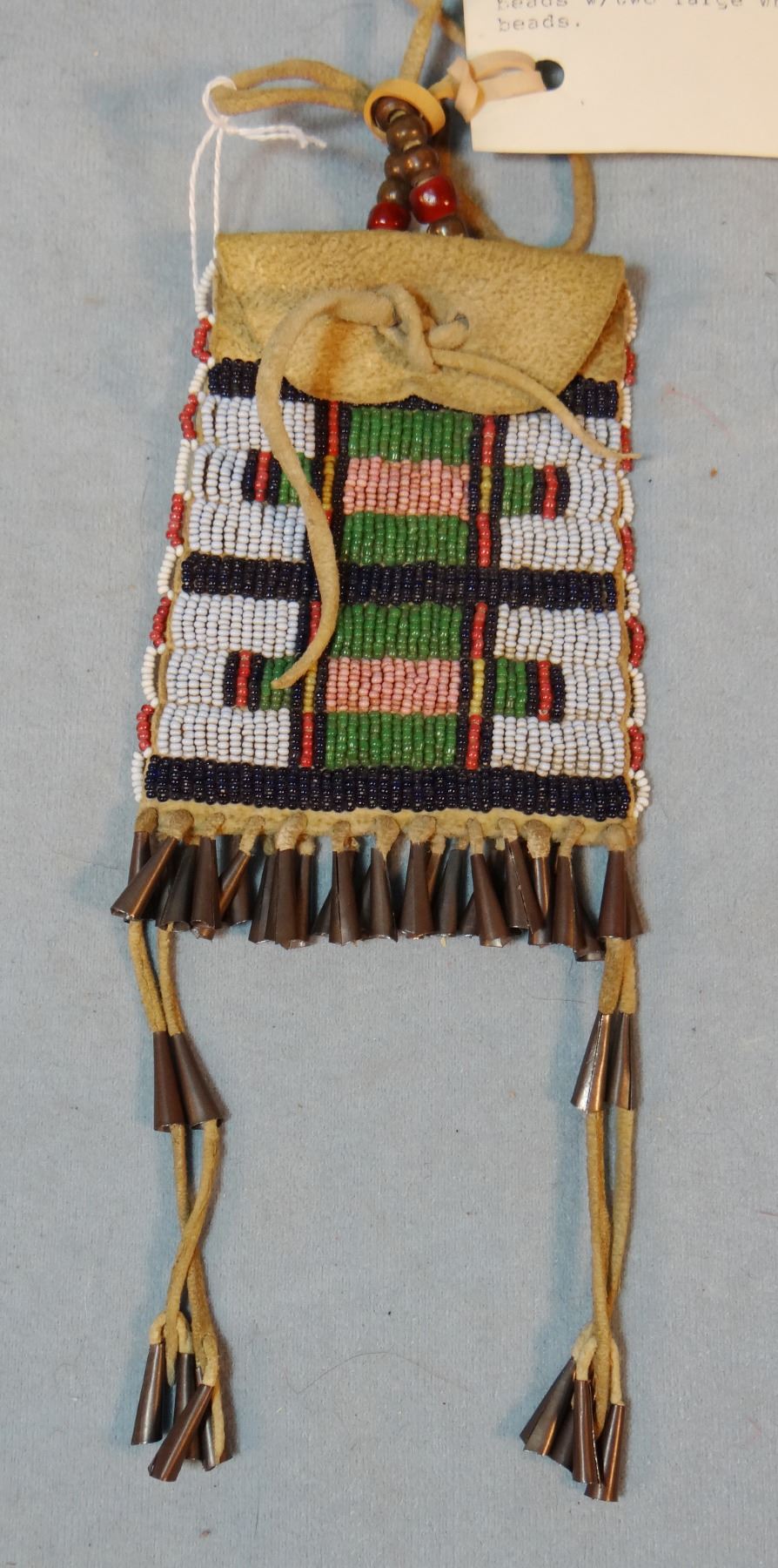 Cheyenne beaded strike-a-lite bag, 4" x 3", soft deer hide, cone tip