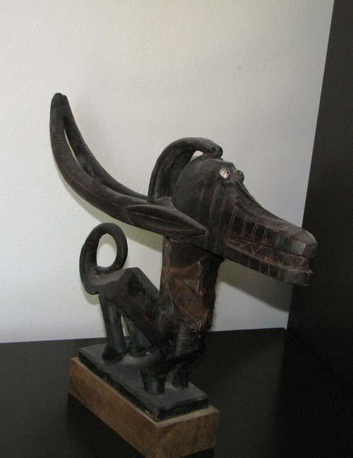 Title: Horizontal Chi Wara Antelope Sculpture with Monkey Skin Neck